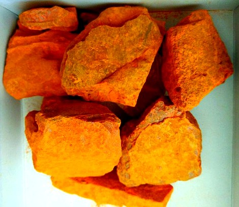 【采集】雄黄在矿中质软如泥,见空气即变坚硬,一般用竹刀剔取其熟透部分,除去杂质泥土。