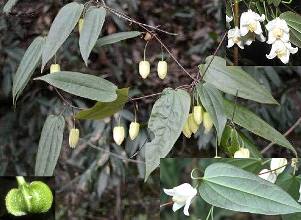 常绿藤本。根条状细长,中间部分膨大呈狭纺锤状块根,表面黄褐色。茎细,具棱线,疏生白色短柔毛。单叶对生,长卵形或卵状披针形,长7~16厘米,宽2~6厘米,先端渐尖,基部浅心形,边缘疏生浅锯齿,薄纸质,下面脉上贴生白色短毛或近无毛,叶脉5出;叶柄长3.5~5.5厘米。聚伞花序腋生,通常具1花,有时3~5花,花梗细长;花被4,卵形,长1~2厘米,白色或淡黄色,外面密被白色短茸毛;雄蕊多数,花丝被白色长柔毛。瘦果扁卵形,被短柔毛,羽状花柱长达3.5厘米。花期11~12月。果期次年3~4月。