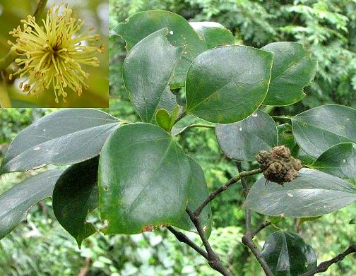 乔木,高20米。树干粗直,秃净而光滑;小枝有膨大的托叶环和节。单叶互生;革质;宽卵形,长10~17厘米,宽9~13厘米,先端渐尖,基部心形,不分裂或掌状3浅裂,掌状脉5~7条;叶柄长3~6厘米;苞片状托叶2片,长2~3厘米,厚革质,裹住芽体,脱落性。头状花序腋生,有10~12朵花;花两性或单性;萼齿短,鳞片状;花瓣2~5,条形,长为花柱之半,或不存在;雄蕊10~14,与花柱等长,花药椭圆球形。花丝丝形;子房半下位,2室,每室有胚珠3个,花柱2。头状果序直径2厘米;蒴果卵形。种子具翅,亮黑色。
