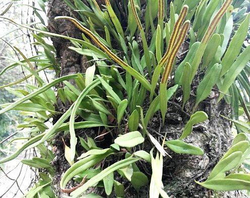 【原植物】多年生草本。根状茎线状,长而横走,密被棕褐色的披针形鳞片。叶远生,2型;营养叶几无柄,或有短柄;叶片椭圆形或矩圆形,长2~5厘米,宽1~2厘米,先端钝,基部楔形;孢子叶线状舌形,长8~15厘米,宽5~8毫米,其上部着生孢子囊,孢子囊群密集;叶革质,上面无毛,背面被星状毛。
