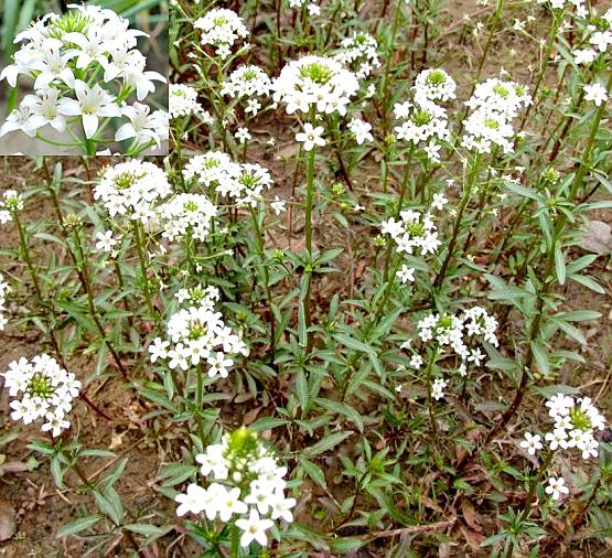 一年生直立草本,全株无毛。茎高18~60厘米,有时基部稍带红色。叶互生,很少对生;披针形,或椭圆状披针形,或线形,长2~4厘米,宽3~10毫米,先端尖或渐尖,基部渐狭至柄带有狭翅,全缘或稍呈波状。花序呈圆锥形的阔总状,有时密集成伞房状,果时伸长;苞片线形凿状;萼片椭圆状披针形或线形,渐尖,长约3毫米;花冠白色,长为萼的2倍,裂片椭圆状倒卵形,较花管稍短;雄蕊附着于花冠上半部,稍短于裂片;花柱与雄蕊等长。蒴果圆形,直径约3毫米。花果期5~7月。