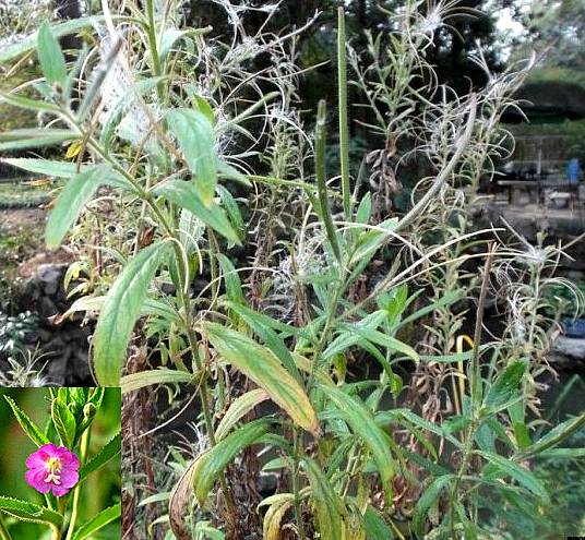 直立草本,高可达60厘米,有分枝。主根粗短,须根细。茎圆柱形,中空,绿色,有2槽,槽中生柔毛。单叶对生;披针形或狭披针形,长2~6厘米,宽0.5~1.5厘米,先端渐尖,边缘具细齿,基部渐狭,两面光滑;无柄或近于无柄。花单生叶腋;具长梗;花萼深4裂,裂片披针形;花瓣4枚,倒卵形,先端凹;雄蕊8,不等长,花丝短,花药藏于花冠之内;子房下位,4室,柱头4裂。蒴果细长,长可达6厘米,宽约1.5毫米;种子多数,小形;顶端具一束白色丝状毛。花期夏季。