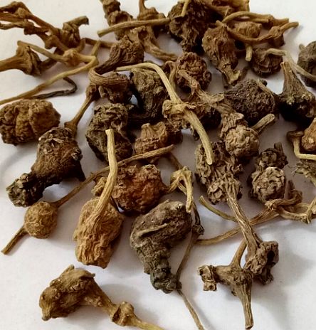 四川所产的钮子七呈不规则圆块形或类圆锥形,较瘦小,两端有瘦细的根茎,表面棕黄色或黄白色,粗糙,有细皱纹及结节,并有瘤状凸起的须根痕。