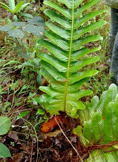 附生多年生草本,高达60厘米。根茎肉质粗肥,横走,密生披针形或卵状披针形鳞片,其边缘有睫毛。叶二型,无毛,营养叶淡棕色,革质,阐卵形,长8~16厘米,宽6~10厘米,羽裂深1/2~2/3;孢子叶柄长8~20厘米,叶片长25~45厘米,宽20~30厘米,矩圆形或矩圆状卵形,羽状深裂达叶轴;裂片互生,下部一二对略短或不缩短,中部的长12~18厘米,宽1.5~2.5厘米,渐尖头,边缘有疏浅缺刻,网状叶脉明显。孢子囊群在主脉两侧各排成整齐的一行,靠近主脉,无囊群盖。