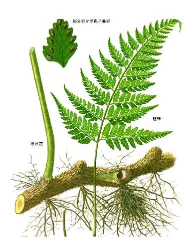 以上两种植物根茎上的鳞片(骨碎补毛)亦供药用,另详专条。