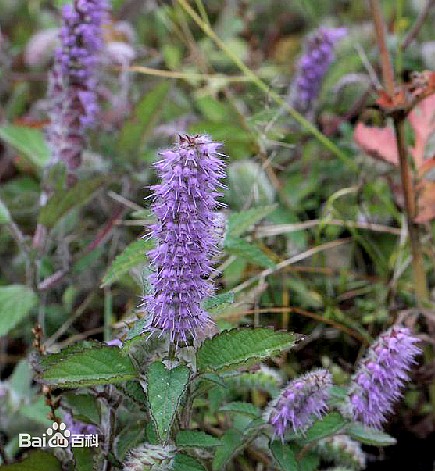 一年生草本,高10~50厘米,全株有香气。茎直立或倾斜,四棱形,被柔毛。叶对生;具柄;叶片卵形、椭圆形至披针形,先端尖或钝,边缘有锯齿,基部渐狭,两面均被短柔毛,下面具黄褐色油点。穗状花序顶生,圆柱状;花小,淡紫红色;苞片椭圆形;萼钟形,5齿裂,具柔毛;花冠4裂,具柔毛;雄蕊4,其中2枚突出。小坚果长椭圆形,长约2毫米。花期7~10月。夏、秋花初开时采割,阴干。