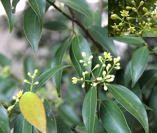 乔木,高达10米,有芳香味。枝褐色。叶互生或近对生,稍革质,披针形,长6.5~7.5厘米,宽1.3~2.3厘米,为明显的离基三出脉,全缘。圆锥花序顶生,花小,白绿色。浆果,有杯状萼托。