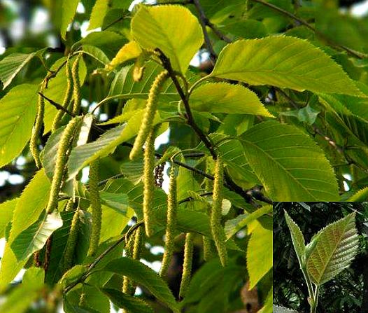 乔木,高达25米。树皮淡黄褐色,老则呈暗黄灰色或红褐色,光滑不裂,有清香气。叶卵形至矩圆形,长5~12厘米,先端长尖,基部圆形、棵形或截形,边缘复锯齿之齿端长尖,上面几无毛,下面沿脉疏生毛,侧脉12~14对;叶柄长1~2厘米,密生短柔毛和腺点。果序单生,长圆柱状,下垂,长3~9厘米,直径6~10毫米;果序柄长1~2厦米;果苞长2~3毫米,中裂片矩圆形至披针形,侧裂片卵形,有时不发育;翅果倒卵形,长2毫米,膜质翅宽为果的2~3倍。