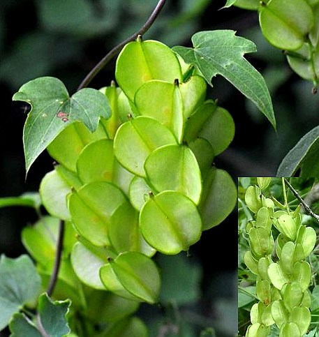 多年生缠绕草本。根茎横走,圆柱形,黄褐色。茎左旋,长达5米,近乎无毛。叶具长柄,互生,卵形或宽卵形,长5~12厘米,通常5~7裂,基部心形,顶端裂片有长尖,叶脉9条,基出,支脉网状。花黄绿色,单性,雌雄异株:花序腋生,下垂;雄花序复穗状,雌花序穗状;雄花小,钟形,花被片6,雄蕊6,着生于花被筒上;雌花被6,矩圆形,柱头3裂,裂片再2裂。蒴果倒卵状椭圆形,具3翅。种子具长方形翅。花期6~8月。果期8~10月。