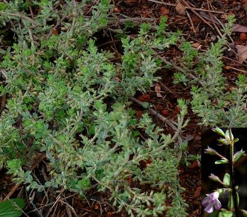 多年生草本,高15~30厘米,全体有姜气味。茎簇生,紫褐色,被白色长柔毛。叶对生,小而密集;叶片卵圆形,长4~7毫米,宽2~4毫米,先端尖,基部浑圆,全缘,上面被细柔毛,下面除叶脉有毛外,其余无毛,有多数棕黄色腺点;叶柄长约1毫米。花小,淡紫色,2~3朵腋生,成小聚伞花序;花萼紫绿色;花冠早落,粉红色,2唇形,上唇直立,下唇广展。小坚果,平滑。花期4~6月。果期8~10月。