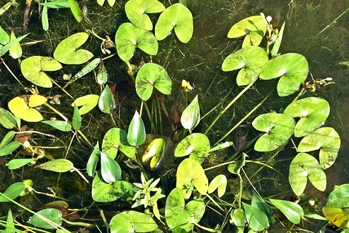 一年生水生草本,簇生水底。叶浮水面,膜质,阔卵形或圆形,长4~6厘米,宽3~5厘米,前端浑圆,基部深心形,青绿色,光滑无毛,脉放射状,不明显;叶柄长短视水之深浅而定,三棱形。总状花序长10~20厘米,生于露出水面少许的花茎上;花白色,有肥壮的短柄,排列成不整齐的花轮,上轮为雄花,下轮为两性花;花瓣卵形,参差不齐。瘦果极扁平,有翅,翅缘有深齿裂。花期夏、秋。