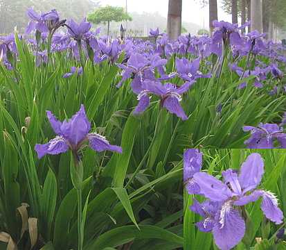 多年生草本,高40~55厘米。根茎匍匐,黄褐色,有较密的结节。叶互生,2列,剑形,长30~60厘米,宽25~40毫米,革质。花茎较叶为长,花数朵组成疏松的总状花序;花淡紫蓝色,径约5~6厘米,花被6,2轮,外轮倒阔卵形,先端稍凹,边缘微齿裂,下部淡黄色,中部具鸡冠状突起,内轮狭倒卵形,先端2裂,边缘稍有齿裂;雄蕊3,着生于外转花被的基部;雌蕊1,子房下位,3室,柱头3裂。蒴果有6棱,种子多数。花期4~5月。
