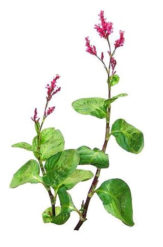 一年生草本,高50~80厘米。须根细,多数。茎圆柱形,具显明的节,单叶互生;叶柄长5~10毫米;基部有鞘状膜质托叶,边缘有毛;叶片椭圆形或卵圆形,长2~8厘米,宽1.5~5.5厘米,先端钝,基部下延,全缘,干后两面均蓝绿色。穗状花序,顶生或腋生;总花梗长4~8厘米;苞片有纤毛;花小,红色,花被5裂,裂片卵圆形;雄蕊6~8,着生于花被基部,药黄色,卵圆形;雌蕊1,花柱不伸出,柱头3歧。瘦果,具3棱,褐色,有光泽。花期7月。果期8~9月。