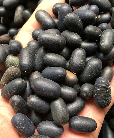 呈卵圆形成椭圆形,两头略尖,长1.5~2厘米,直径0.8~1.2厘米,表面灰棕色或灰黑色,被灰白色粉霜,除去后略有光泽,可见密生的浅色小点;顶端有小圆孔,基部有短果柄,果柄旁有圆形棕色小突起。质坚硬,不易破开;果皮厚约1毫米,内表面红棕色。内种子一颗,即莲肉。气无,味涩檄甘。以色黑、饱满、质重坚硬者力佳。