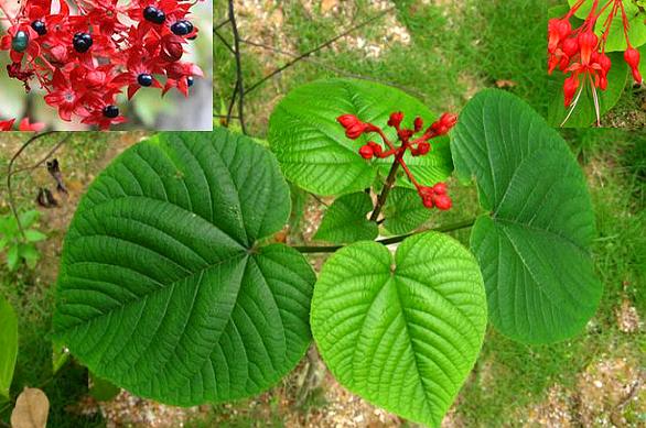 落叶灌木,高1~3米,茎上密被细柔毛。单叶对生,广卵圆形,长可达30厘米,先端渐尖,基部心脏形,边缘有锯齿;上面深绿,疏被短毛,下面密被小圆形鳞片。疏松聚伞花序,并形成圆锥花序,顶生;小花梗长约1.5厘米;苞片丝状,被短毛;花萼红色,5深裂,裂片长披针形;花冠鲜红色,筒部长;雄蕊4,插生于花冠筒之上,伸出;雌蕊1,长为雄蕊的2倍,先端2裂,花柱细长,子房为不完全的4室,胚珠4枚。核果包于萼筒内,球形或倒卵形,果皮具汁,裂为2或4个小坚果。花期6~7月。