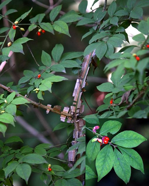 ②治骨折及风湿疼痛:翅卫矛配钮子七、铁线莲、卷柏、华蕨槲、秦艽、铁棒七。泡酒服。
