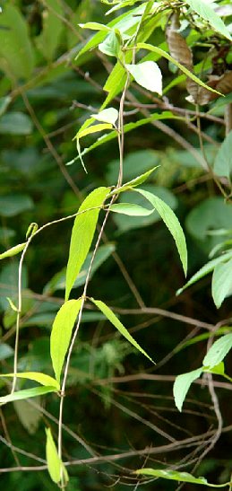 多年生缠绕藤本。茎细弱,多分枝,绿色。叶对生;狭披针形,长3~4.5厘米,宽5~10毫米,全缘;叶柄短,长2~3毫米。伞形花序腋生,具少数花朵;花冠钟形,5裂,淡绿色。??果纺锤形,长4~5厘米。种子先端有冠毛。