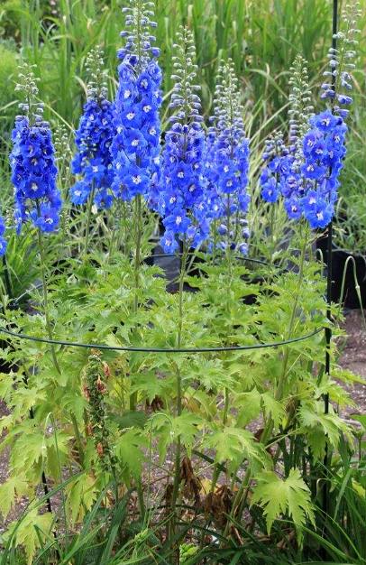 多年生草本,高达1米,具长直根,光滑或上部略具纤毛。茎无毛,有细纵校。叶互生,掌状5~7裂,阔楔形,均具缺刻,上面较光滑,有时叶脉上具刚毛,下面光滑,周围有?状刚毛;基部叶柄长14~16厘米,上部叶柄较短。圆锥花序,具花10余朵;苞片叶状,1~3裂,裂片线状披针形;花蓝色,径约2厘米;萼片5,下部萼片长椭圆形,上面具黄色刚毛,下面无毛,上部萼片有弯曲的距,外面满具黄色刚毛,其余萼片两面无毛;上部花瓣具鸟喙状之距,套在萼距中,无毛,暗黄色,下部者卵圆形,2裂,淡紫色,具黄色刚毛;雄蕊多数;心皮3,略具黄色刚毛。??果。花期6月。