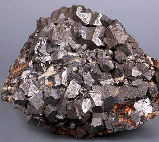 方铅矿:等轴晶系。晶体形状常为立方体或八面体。在自然界常见的多为粒状集合体。颜色铅灰色。条痕淡黑灰色。金属光泽。不透明。立方体解理完全。断口呈平坦之半贝壳状或参差状。硬度2~3。比重7.4~7.6。性脆。产于热液矿床中,常与闪锌矿共生。