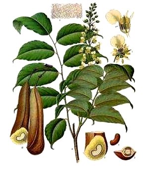 乔木,高达30米。幼枝的皮部有树脂道,但早脱落,树干则全无树脂道。单数羽状复叶,小叶9~13,椭圆形,先端渐尖,全缘。总状花序腋生;花白色。荚果黄色。