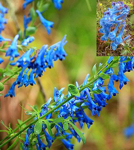 多年生草本,高50~100厘米。根茎较粗,断面黄色。茎直立或上部略倾斜,被柔毛。1~3回羽状复叶,互生;基生叶具长柄;小叶片纸质,倒卵形或卵圆形,3深裂或羽裂,上面绿色,下面灰绿色或绿白色。总状花序顶生或顶部叶腋生;苞片披针形;萼片椭圆形。干后紫色,上部具不整齐的深裂;花冠红紫色或蓝色,花瓣4,上部花瓣基部成距;雄蕊6;雌蕊1,子房上位,1室,花柱细长,柱头2裂。蒴果,长圆状椭圆形,2瓣裂,花柱宿存。种子细小,近圆形,黑色,有光泽。花期5~6月。果期7~3月。夏、秋季采挖,晒干。