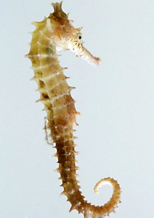 (6)小海马,体形较小,7-10cm。棕褐色节纹及短棘均较细小。