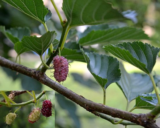 落叶灌木或小乔木,高达15米。枝开展,无毛;树皮褐灰色,纵裂,单叶互生,卵圆形,长6~15厘米,宽4~10厘米,先端急尖或渐尖,基部截形或近心形,边缘有祖锯齿,有时3~5裂,两面均有短毛;托叶早落。穗状花序生于新枝的叶腋,单性,雌雄异株;雄花被片和雄蕊均为4枚,不育雌蕊陀螺形;雌花柱头2裂与花柱等长,宿存。聚花果成熟时呈暗紫色。