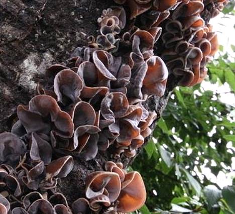 ⑧治咽喉痹痛:五月收桑上木耳,白如鱼鳞者,临时捣碎,绵包弹子大,蜜汤浸含之。(《便民图纂》)