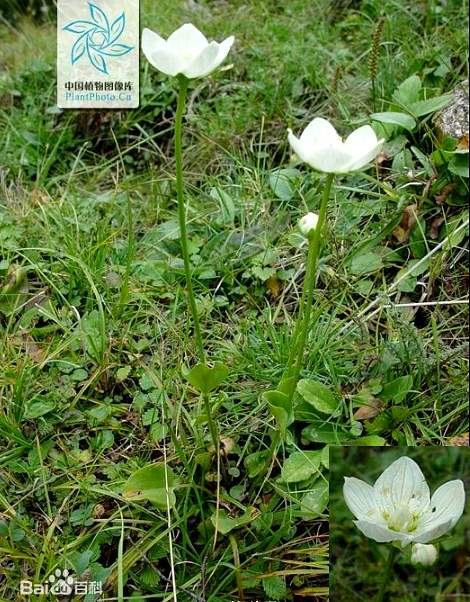 多年生草本,高达50厘米。基生叶丛生,卵圆形至心形,长1~3厘米,宽1.5~3.5厘米,先端尖,基部心形,全缘,叶柄长;花茎中部生叶1片,无柄,基部抱茎,形与基生叶同。花单一,顶生,白色至淡黄色,直径2~3.5厘米,形似梅花;萼片5,长椭圆形;花瓣5,卵状圆形;雄蕊5,退化雄蕊中上部丝裂,裂瓣先端有头状腺体;花柱短,先端4裂。蒴果卵圆形,上部4裂。种子多数。夏季开花时采收,阴干。