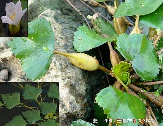 尚有一种乌菱(《纲目》),果实具两角,平展,先端向下弯曲,两角间直径4~6厘米。长江以南各地均有栽培。