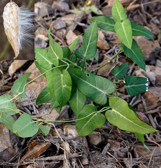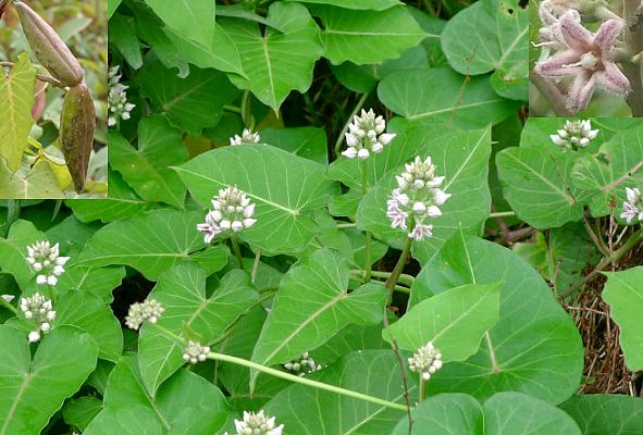 多年生蔓性草本,长达2米以上,折断后有乳白色液流出,全体被柔毛。地下茎易繁殖,地上茎常缠绕他物上升。叶对生,卵状心形,长6~10厘米,宽4~8厘米,先端锐尖,基部心形,全缘;具柄,长1~6厘米,被细毛。总状花序腋生;总花梗长3~9厘米,被灰白色细毛;花多数,密生于顶端,各花具小梗,基部有一个披针形的小苞片;萼绿色,5深裂,裂片狭披针形,先端尖;花冠绿白色,内带淡紫色,5裂,裂片披针形,反卷,内面密生细毛;副花冠低,呈环形;雄蕊5,花药箭形,先端有心脏形薄膜;雌蕊1,子房上位,由两个离生心皮组成,花柱2,合成柱状,伸出药外,柱头2裂。??果呈角状,长约9~12厘米,成熟时淡褐色。种子多数,扁卵形,边缘成翅状,上端着生多数白色绢丝状毛。花期7~8月。果期9~10月。7~8月采集全草,鲜用或晒干。