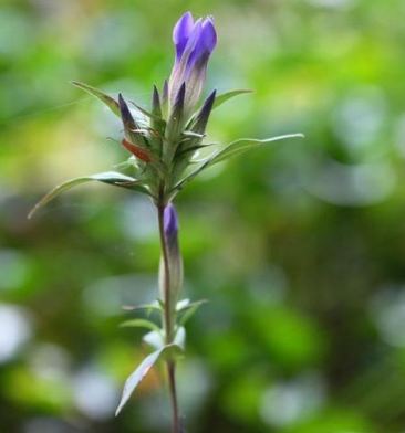 多年生矮小草本,高约5厘米。根数条,肉质,细圆柱形或纺锤形,黄白色。无主茎。叶小,辐射状平铺地面;线状披针形,长1.2~2.4厘米,宽约3毫米,先端尖,基部阔,彼此相抱,主脉于两面均稍凸出,下面灰白色,全缘。花茎自叶丛抽出,每花茎上有花1~2朵;紫蓝色;花冠狭长,漏斗形,花瓣5。蒴果。夏、秋采集。洗净晒干。