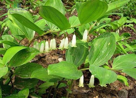 多年生草本,高20~30厘米。根茎横走,圆柱形略扁,有环节及茎基痕迹,肉质,外皮黄色,须根多数。茎直立或稍倾斜,绿色,具细纵棱,叶互生,卵状披针形,长6~10厘米,宽1.8~2.8厘米,先端渐尖,基部阔楔形或圆形,全缘,3出脉。花腋生,单一或成对,花梗长1~1.5厘米;花被基部筒状,先端6裂,白色,副花冠6片,每片复2裂;子房上位。浆果球形,直径6~7毫米。