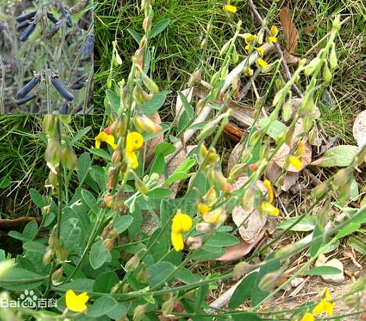 木状草本,高15~100厘米基单一或分枝,枝条细弱,略被短毛。单叶互生,叶倒披针形,大小不一,上面光滑,绿色,下面略被柔毛,青灰色,几无叶柄。托叶极微细,如刚毛状,肉眼不易察见。总状花序顶生或同时腋生,有花6~20朵;苞片与小苞片甚细小,线形或丝状;小苞片着生于花萼基部;花萼长6~8毫米,深裂,萼齿矩形或线形,先端狭尖,略被丝光质短柔毛;花冠蝶形,淡黄色;旗瓣先端浑圆,至基部渐狭,边沿略被毛;翼瓣倒卵形;龙骨瓣曲折,均具短爪。雄蕊10枚,合生成单体,花药异型;花柱长,柱头细小,斜生,荚果无毛,圆柱形,伸出于花萼之外;种子6~12颗。花果期5~11月。夏、秋采集,洗净,晒干。