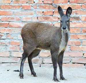 体形小,长65~95厘米,体重8~13公斤。体毛粗硬,曲折如波浪状,易折断。雌雄均无角。耳长直立,上部圆形。眼大,吻端裸露,无眶下腺,雄兽上犬齿发达,露出唇外,向下微曲。四肢细长,后肢较前肢长;主蹄狭尖,侧蹄显着,尾短,雄兽鼠蹊部有香腺囊,囊内分泌麝香,外部略隆起;香囊外毛细短,稀疏,皮肤外裸,囊的外皮中央有2小口,在前面的为香囊口,在后面的为尿道,口外都有细毛一撮。体毛深棕色,体背体侧较深,腹毛较淡,下颌白色,颈两侧各有白色毛延至腋下,呈两条白带纹,颈背、体背有土黄色斑点,排列成四、五纵行,在腰及臀部两侧的斑点,明显而密集。