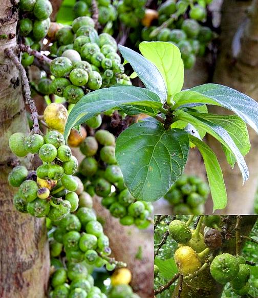 灌木或小乔木,高3~5米,具乳汁。幼枝被刚毛,中空。叶革质,常对生;卵形、倒卵形或长圆形,长10~20厘米,宽6~12厘米,基部圆形或阔楔形,先端短尖或具短尾尖,全缘或具不规则细锯齿,或仅顶鄙具锯齿,两面均祖糙,上面疏被稀刚毛,下面密被粗毛;叶柄长1~4.5厘米;托叶阔披针形,长1.5厘米。早落,花托(隐头花序)聚生于老树干,或由树干发出的无叶枝条,扁球形或陀螺形,直径1.5~3厘米,成熟时黄色,具柄,被粗毛,中部以下常具数枚苞片,基部苞片3;雄花、瘿花生花托口部,雄花被3,雄蕊1;瘿花及雌花无花被。小坚果,骨质。花期6~7月(广西)。全年可采。根洗净晒干,皮除去外皮,取二层皮;叶刷去毛用。