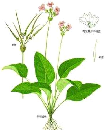 多年生草本。叶基生;卵形或近圆形,稀为长圆形,长6~10厘米,边缘具细钝锯齿,两面均伏生短柔毛;具叶柄。花茎数个丛生,直立,高15~20厘米;聚伞花序顶生,花5~6朵,粉红色;苞片小;萼片5,狭;花冠阔钟状,基部稍不等,2唇形,裂片5,卵形,蒴果线形,长2~3厘米,室裂,果瓣2,螺旋状扭转。春季采挖,晒干或鲜用。