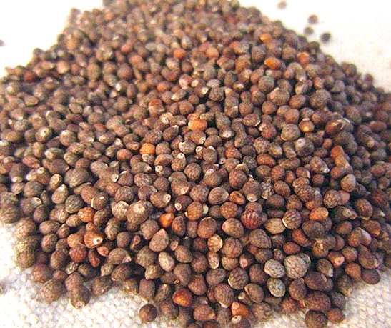 【药材】干燥的果实呈卵圆形或圆球形,长径0.6~3毫米,短径0.5~2.5毫米。野生者粒小,栽培者粒大。表面灰褐色至暗棕色或黄棕色,有隆起的网状花纹,较尖的一端有果柄痕迹。果皮薄,硬而脆,易压碎。种仁黄白色,富油质。气清香,味微辛。以颗粒饱满、均匀、灰棕色、无杂质者为佳。