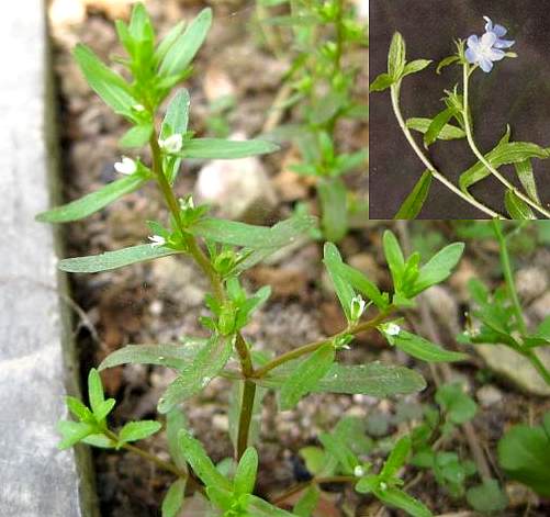 一年或二年生草本,无毛或具腺毛,高12~18厘米。茎直立,有时基部作匍匐状,多分枝;呈丛生状。叶对生,倒披针形,长1.5~2厘米,宽2~4毫米,下部叶具柄、上部叶无柄,全缘或具细微稀锯齿。花单生于苞腋;苞片线状倒披针形;花柄长约1毫米,远短于泣片和萼片;花萼4裂,裂片狭披针形,先端钝;花冠白色,略带淡红,冠筒短,4深裂,辐射状排列;雄蕊4,雌蕊1,子房上位,花瓣短粗。蒴果扁压状卵形,先端微凹,无毛,在成熟果实内常有小虫寄生。种子长圆形,扁平,无毛。花果期4~5月。