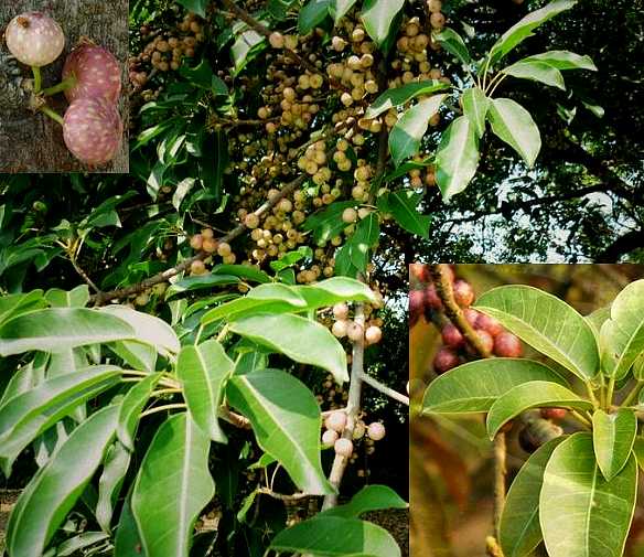 乔木,高5~9米。树皮呈暗赭色,稍平滑。叶互生,长椭圆形或矩圆形,长5~12厘米,宽2~6厘米,先端钝或渐尖,基部钝或圆形,全缘,具基生3出脉,侧脉7~10对。花序托球形,有梗,单生或成对腋生或簇生于枝干上。雄花、瘿花和雌花同生于一个花序托中。雄花无梗,花被片3~4,雄蕊1:瘿花与雌花相似,花被片4~5。果实扁球形,成熟时淡红色,有斑点。全年可采。
