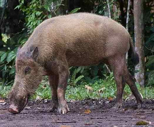 体长约1~2米,体重约150公斤,最大的雄猪可达250公斤,雄比雌大。外形与家猪相似,吻部十分突出。雄猪的犬齿特别发达,上、下颔犬齿皆向上翘,称为獠牙,露出唇外;雌猪獠牙不发达。四肢较短。尾细。躯体被有硬的针毛,背上鬃毛发达,长约14厘米,针毛与鬃毛的毛尖大都有分又。毛色一般为棕黑色,面颊和胸部杂有黑白色毛。幼猪躯体呈淡黄褐色,背部有6条淡黄色纵纹,俗称花猪。