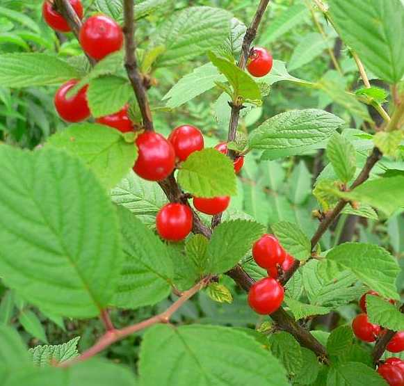 落叶灌木或小乔木,高3~5米。小枝光滑,幼时带红,老变灰褐色。叶互生,卵形或长圆状倒卵形,先端锐尖或短尾状,基部圆形或心形,边缘具细密锯齿,叶柄顶端常具2个盘状腺。花白色,3~9朵排列成总状花序,苞片叶状,缘具盘状腺;萼反卷,与筒部等长。核果近球形,红色。果熟期7~8月。7~8月果实成熟时采收。
