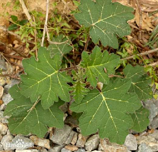 多年生直立亚灌木,高30~60厘米。茎有劲直的长刺,幼嫩部混生刺毛。叶单生或成对,互生,阔卵形,长5~12厘米,宽5~10厘米,5~7裂,两面均被紧贴的硬毛,主脉上有刺;叶柄有刺,有时混生疏长毛。聚伞花序腋外生,有花数朵,有时花单生;萼有刺,5裂,花冠白色,裂片披针形;雄蕊5枚,着生于花冠喉上,花药顶裂;子房2室,胚珠多数。浆果球形,直径2.5~4厘米,秃净,成熟时橙红色。花期夏、秋季。根:夏、秋季采,鲜用或晒干。果实、种子:秋季采,种子洗净晒干,炒黄至有香气,备用。