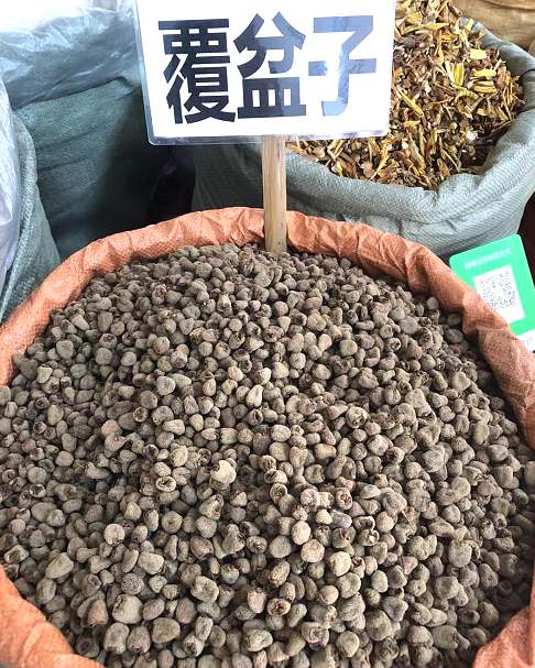 覆盆子药材主要为掌叶覆盆子 Rubuschingii的果实。插田泡R. coreanus的果实使用于陕西、四川等地,《植物名实图考》所载的覆盆子图即为此种。