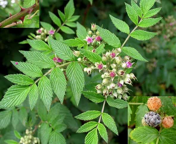 落叶小灌木,高50~120厘米。枝、叶柄及花序均具刺;新枝红紫色,密被白色细绒毛;老枝紫褐色,被绒毛。单数羽状复叶,小叶5~9(~11)枚,阔卵圆形或菱状披针形,长2~5厘米,宽1~3厘米,顶生小叶最大,菱形,或2~3裂,先端短尖或、渐尖,基部圆形或阔楔形,边缘具重锯齿或粗锯齿,下面白绿色,密被细绒毛;叶柄长约1~3厘米;托叶红紫色,披针形,有绒毛。聚伞花序顶生或腋生,花小,径约6毫米;萼片5,披针形或卵状三用形;花瓣5,桃红色,倒卵形,基部具短爪;雄蕊多数,分离;心皮多数。聚合果扁球形,径约1厘米,红色,成熟后紫黑色,密被绒毛。花期夏季。根秋季采,洗净,切片,晒干。