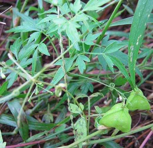 【性状】干燥全草,茎粗2~4毫米,黄绿色,有深纵沟槽,分枝纤细,多少被毛,质脆,易折断,断面粗糙。叶多脱落、破碎而仅存叶柄,2回3出复叶,小叶卵形或卵状披针形,暗绿色。花淡黄色,干枯,与未成熟的三角形蒴果附于花序柄顶端,下方有卷须。气微,味稍苦。以全草叶多、足干为好。