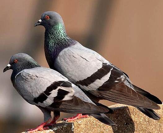 ②家鸽:由原鸽驯养而来。种类很多,有扇尾、球胸、瘤鼻、眼镜及传书鸽等品种。毛色复杂,以青灰色较普遍,亦有纯白、茶褐、黑白混杂等。我国大部分地区均有饲养。