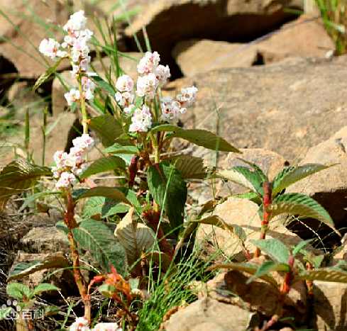 多年生草本,高60~90厘米。须根稍带淡红色或紫色。茎平卧或斜生,2叉分枝,无毛或上部被有短柔毛,节上生不定根。叶互生,叶柄长6~12毫米;叶片卵状椭圆形至披针形,长7.5~15厘米,宽2.5~6厘米,先端渐尖或顶部成尖尾状,基部短尖或浑圆,两面略被短柔毛,带灰白色,上面深绿,或下面被茸毛;托叶鞘抱茎。聚伞花序,有极展开的分枝,花小,有时下垂,具短花梗;苞片小,通常卵形,急尖;花被淡红色或红色,钟形,长3~4毫米,裂片近于相等,矩圆形;雄蕊8,雌蕊1,子房三棱形。瘦果,灰白色,先端伸出宿存的花被外。花期7月。
