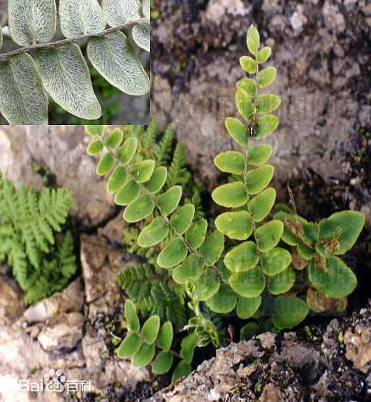 多年生草本,高30~50厘米。根状茎粗短,斜升,密被氏线形棕色鳞片。叶近生;叶柄高7~15厘米,褐黑色,有光泽,被糠秕状鳞片;1次羽状复叶,长15~30厘米,宽3~4厘米;顶端羽片最大,两侧羽片7~14对,互生,羽片卵圆形至卵圆状矩圆形,全缘,先端钝,中部羽片长2~2.5厘米,宽7~12毫米;下部羽片剖、柄,上部的无柄;叶厚纸质,两面密被细长锈毛,尤以下面为多;叶脉扇状。孢子囊群沿侧脉着生,隐没于锈毛内:囊群盖缺如。