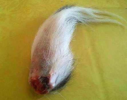 【采集】将鹿尾由尾椎骨处割下,挂起阴干;或将割下的带毛鹿尾,入水中浸润,取出,除去根部残肉、油脂,剪去毛茸及外面老皮,再用海浮石搓光,用线穿挂通风处阴干,后置干燥处,宜多翻晒。商品,前者称带毛鹿尾;后者称不带毛鹿尾。